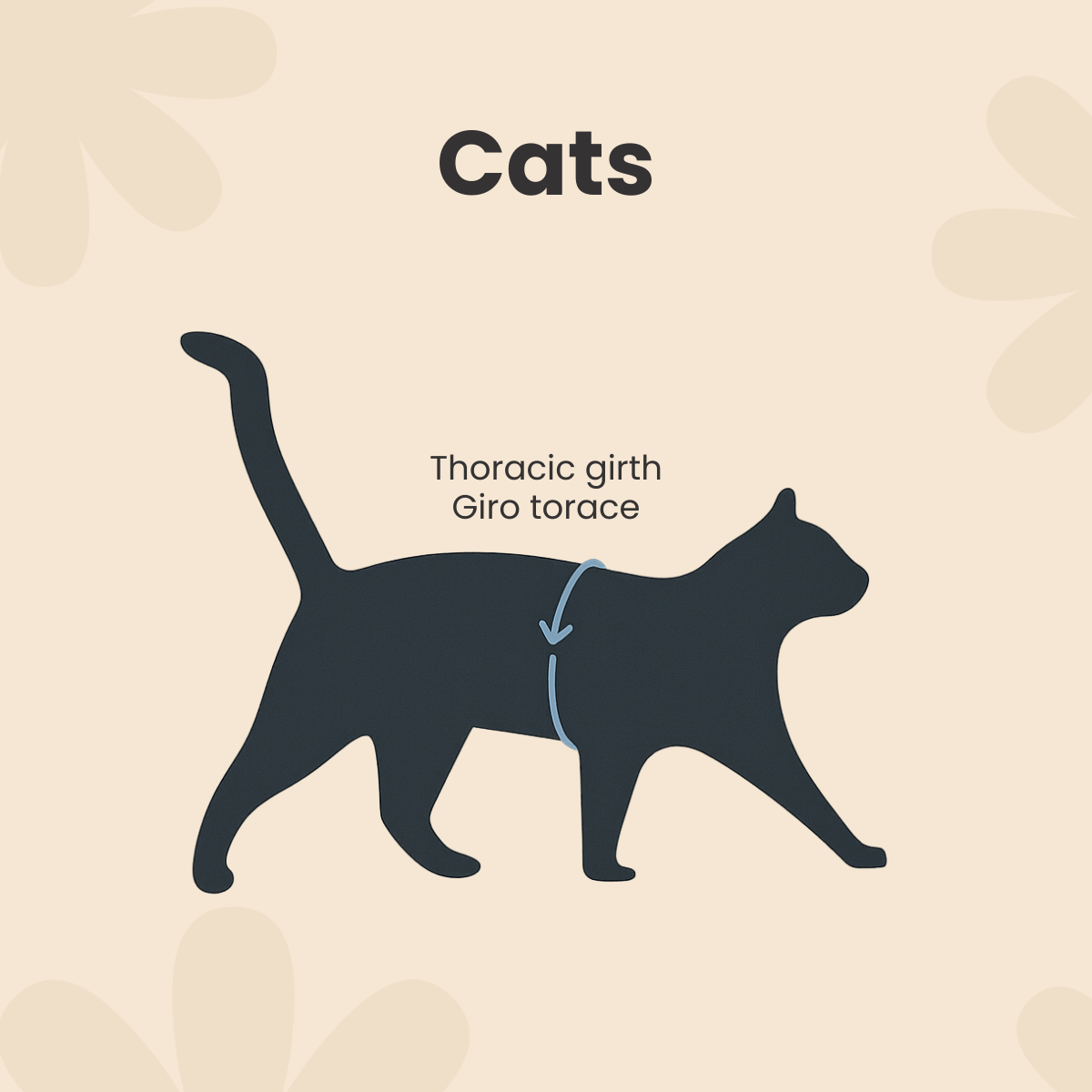 Take a tape measure and measure your pet as shown in the images below.