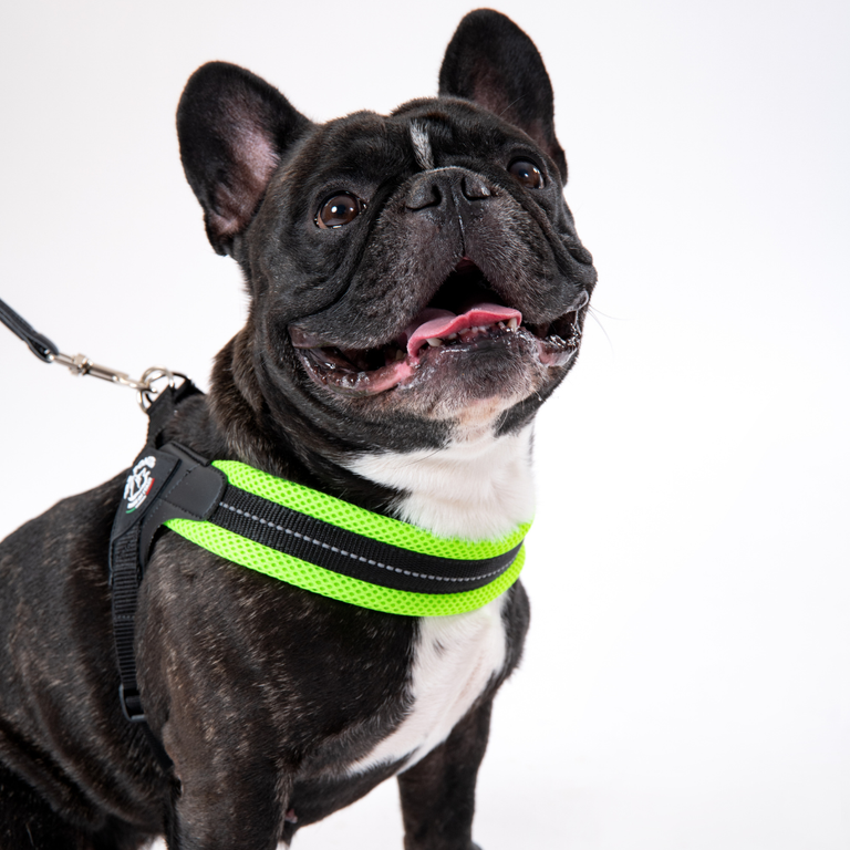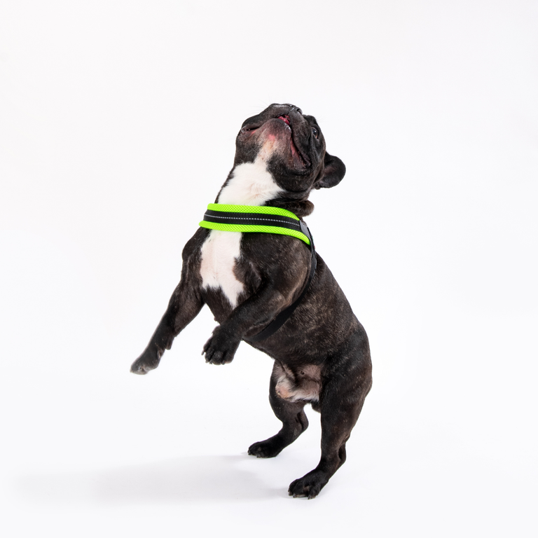 The adjustable girth band adapts to your dog’s body at every stage of growth, it’s as if the harness “grows” with them.
