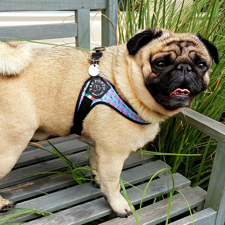 The adjustable girth band adapts to your dog’s body at every stage of growth, it’s as if the harness “grows” with them.