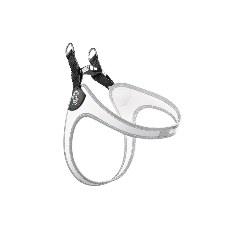 Thanks to its "second skin" material, the harness perfectly adapts to the dog's body shape without trapping hair or causing tangles.