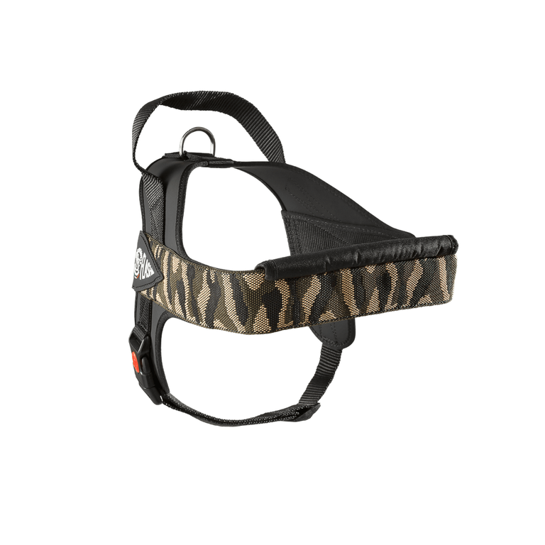 Durable, ergonomic materials ensure long-lasting performance, while the wide back, padded front strap, and adjustable girth allow the harness to adapt perfectly to your dog’s build.