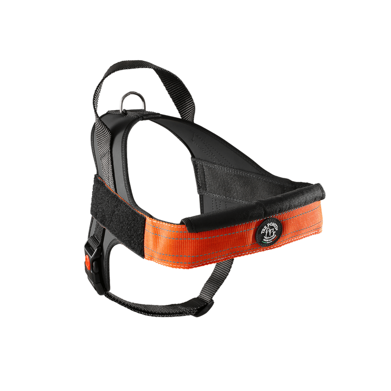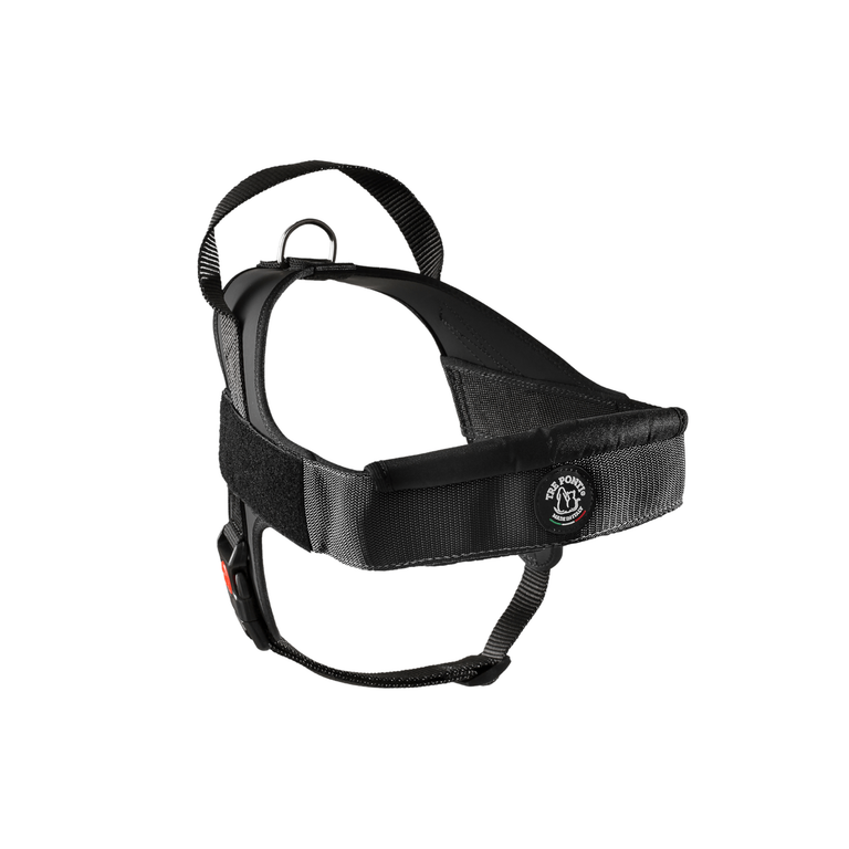 Durable, ergonomic materials ensure long-lasting performance, while the wide back, padded front strap, and adjustable girth allow the harness to adapt perfectly to your dog’s build.