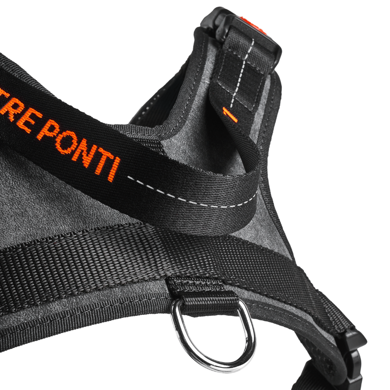 Easy to put on and adjust, it features a double front opening with safety buttons and four independent adjustment points for a perfect fit on dogs of all shapes and sizes.