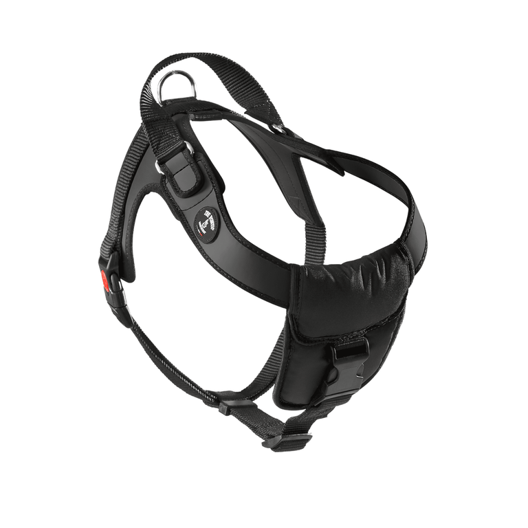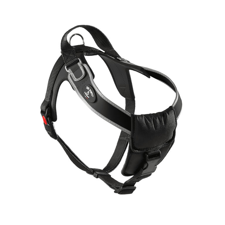 Made from ergonomic, technical materials with front padding, it features double adjustment on the girth and chest for a precise, customized fit.