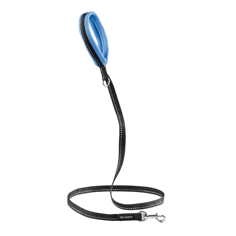 This leash is designed for superior comfort and safety, featuring a soft mesh handle and a ribbon with a reflective insert to ensure excellent visibility, even during evening walks.