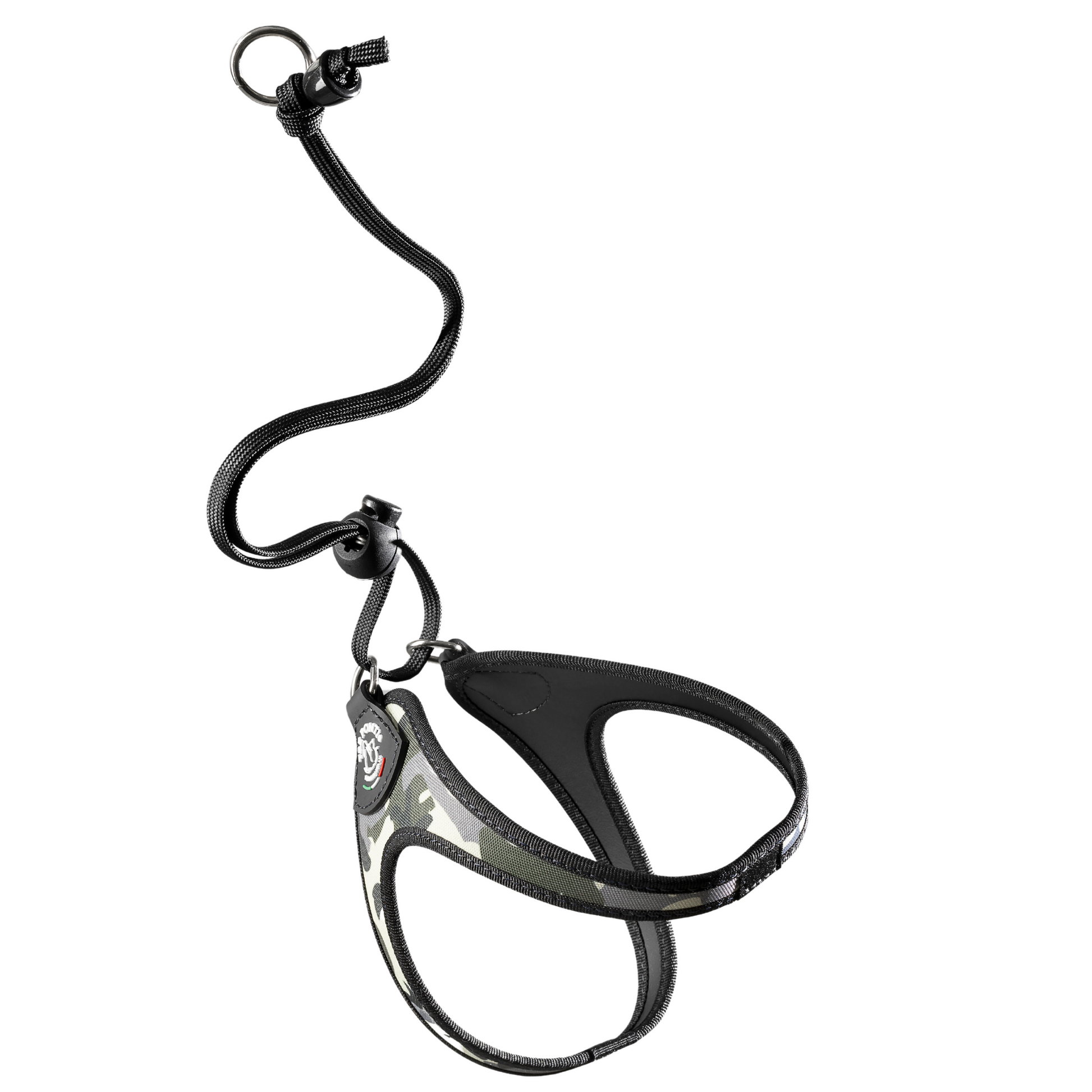 Avertissement:Mettez le harnais à votre animal et ajustez la sangle. La taille est correcte lorsque le logo Tre Ponti se trouve au-dessus de l'épaule de votre animal sans gêner ses mouvements. Vérifiez régulièrement la sangle : si elle est usée, remplacez-la par une neuve d'origine. Vous trouverez nos sangles Tre Ponti sur notre site web officiel ou auprès de votre revendeur Tre Ponti.